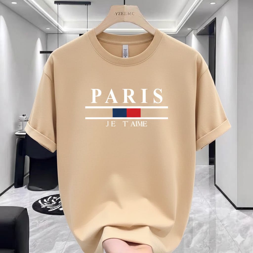 Premium Beige PARIS Drop Shoulder T-Shirt – 220 GSM | DR Fashion